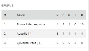 Bosna i Hercegovina je bodom iz ove utakmice zadržala prvo mjesto u