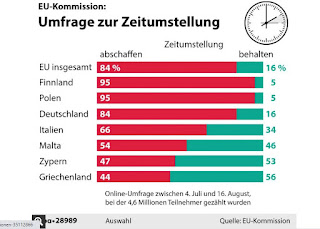 Bilo je to do sada najuspješnije istraživanje koje je agencija provela. Međutim, treba reći i: 4,6 miliona sudionika predstavlja manje od jedan posto populacije EU-a, a njih tri miliona dolazi iz Njemačke. I u Austriji je učešće bilo natprosječno. Samo Grčka i Kipar izjasnili su se da se održi promjena vremena.